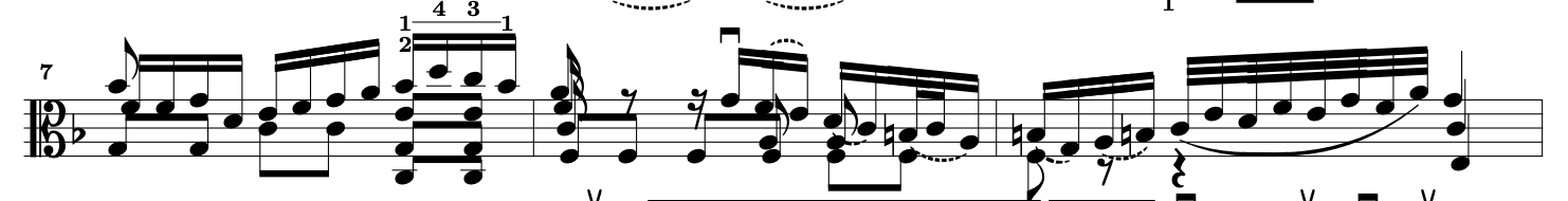 Though the note values are quite long, the string crossings themselves have to be quick! This is especially an issue if the player uses the common fingering of starting on the G string for the first F#.